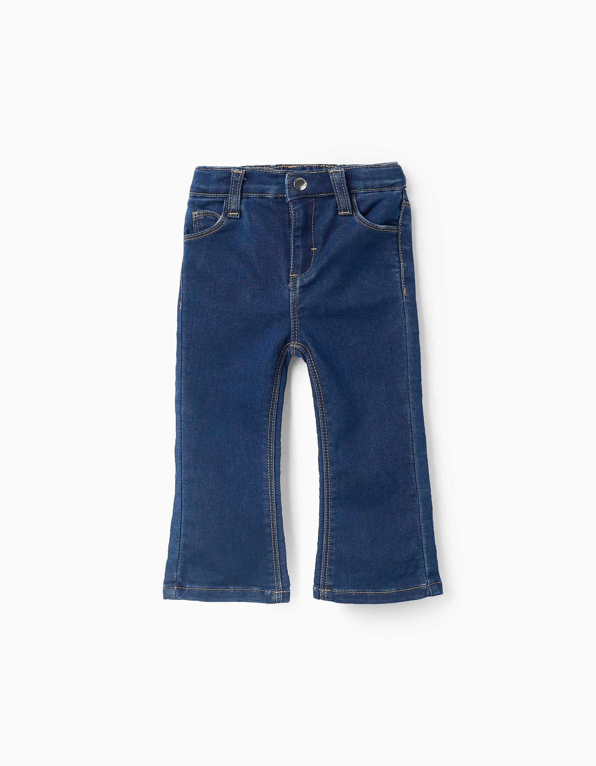 Pantaloni denim svasati in cotone con un tocco di stretch per maggiore comfort e libertà di movimento. Chiusura con bottone, regolabili all’interno con elastici e bottoni. Cuciture gialle a contrasto. Un pantalone comodo e alla moda! 49% POLIESTERE 49% COTONE 2% ELASTAN