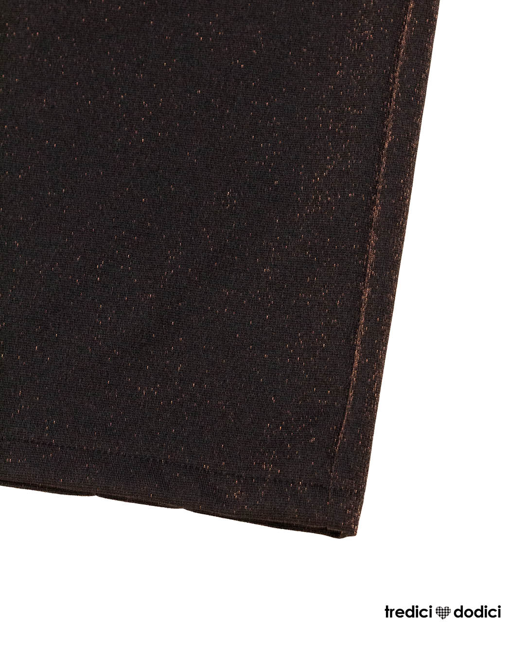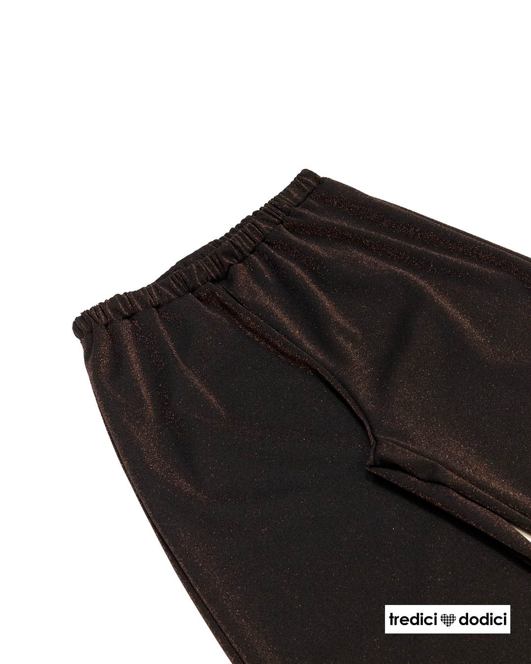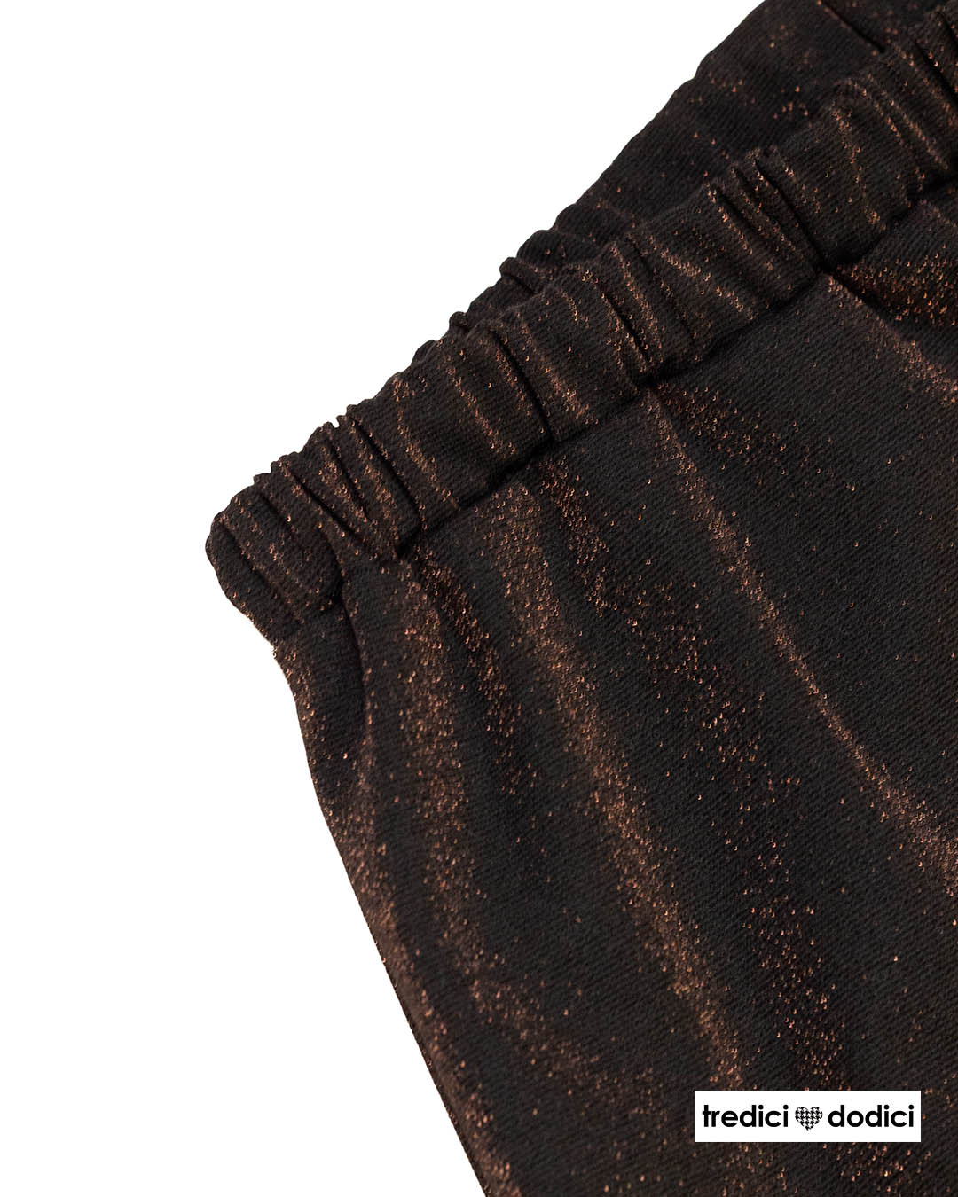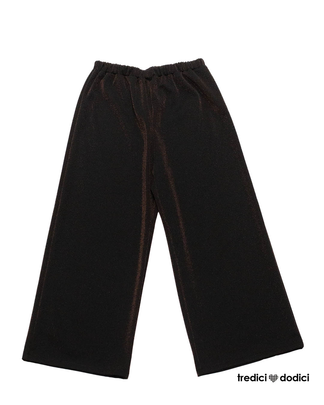 Pantalone donna modello coulotte, più corto sopra la caviglia, in punto milano nero glitter bronzo.