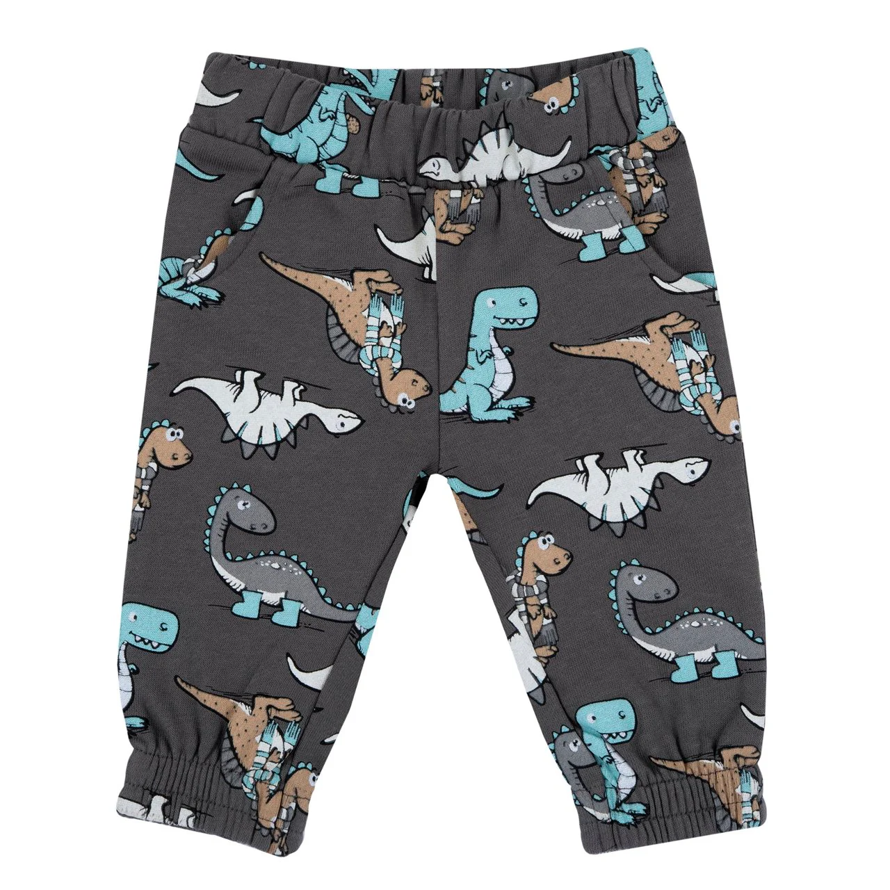 Pantaloni lunghi in felpa garzata Stampa con motivo dinosauri Cresta applicata sul retro Cotone sostenibile Prodotto con Certificazione Oeko-Tex: la qualità per il tuo bambino