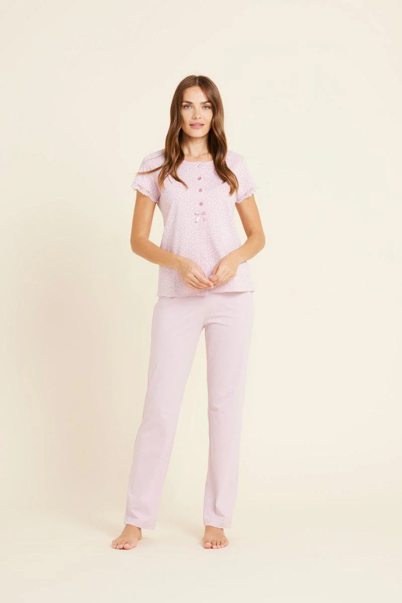 Pigiama aperto donna puro cotone mezza manica e pantalone lungo calibrato Noidinotte FA8284