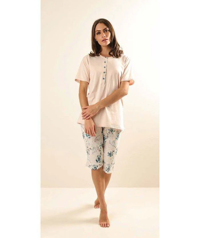 Pigiama conformato donna mezza manica pinocchietto Gary puro cotone Z55055CONF