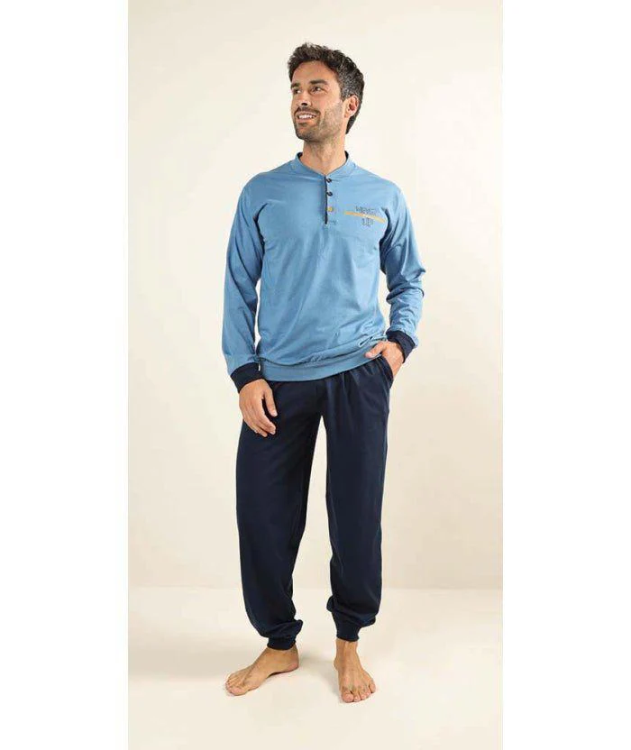 Pigiama uomo lungo Jersey serafino Gary puro cotone Z60090