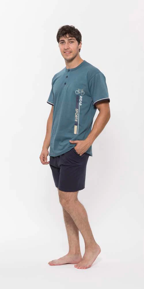 Pigiama uomo serafino Gary calibrato mezza manica pantaloncino puro cotone R65078CONF