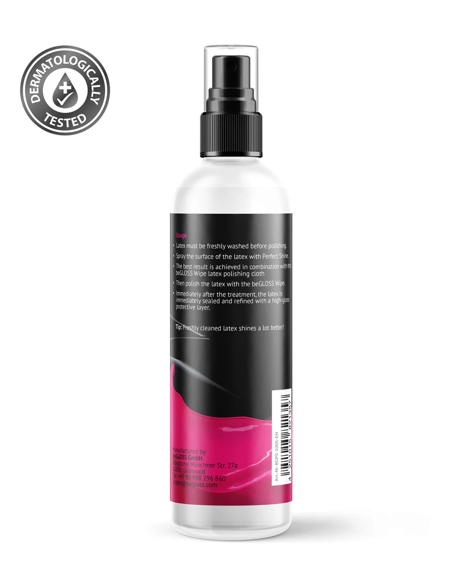 Prova la perfetta finitura a specchio del lattice con la serie beGLOSS Perfect Shine. La soluzione di lucidatura del lattice a base di silicone è un prodotto di alta qualità per la cura e la lucidatura del lattice, tutto in uno. Fornisce una protezione adeguata e mantiene il lattice elastico e morbido per ottenere la straordinaria sensazione del lattice ad ogni tocco. L’edizione Traveler da 100 ml ha le dimensioni perfette per il bagaglio ed è eccellente per i principianti del latex.