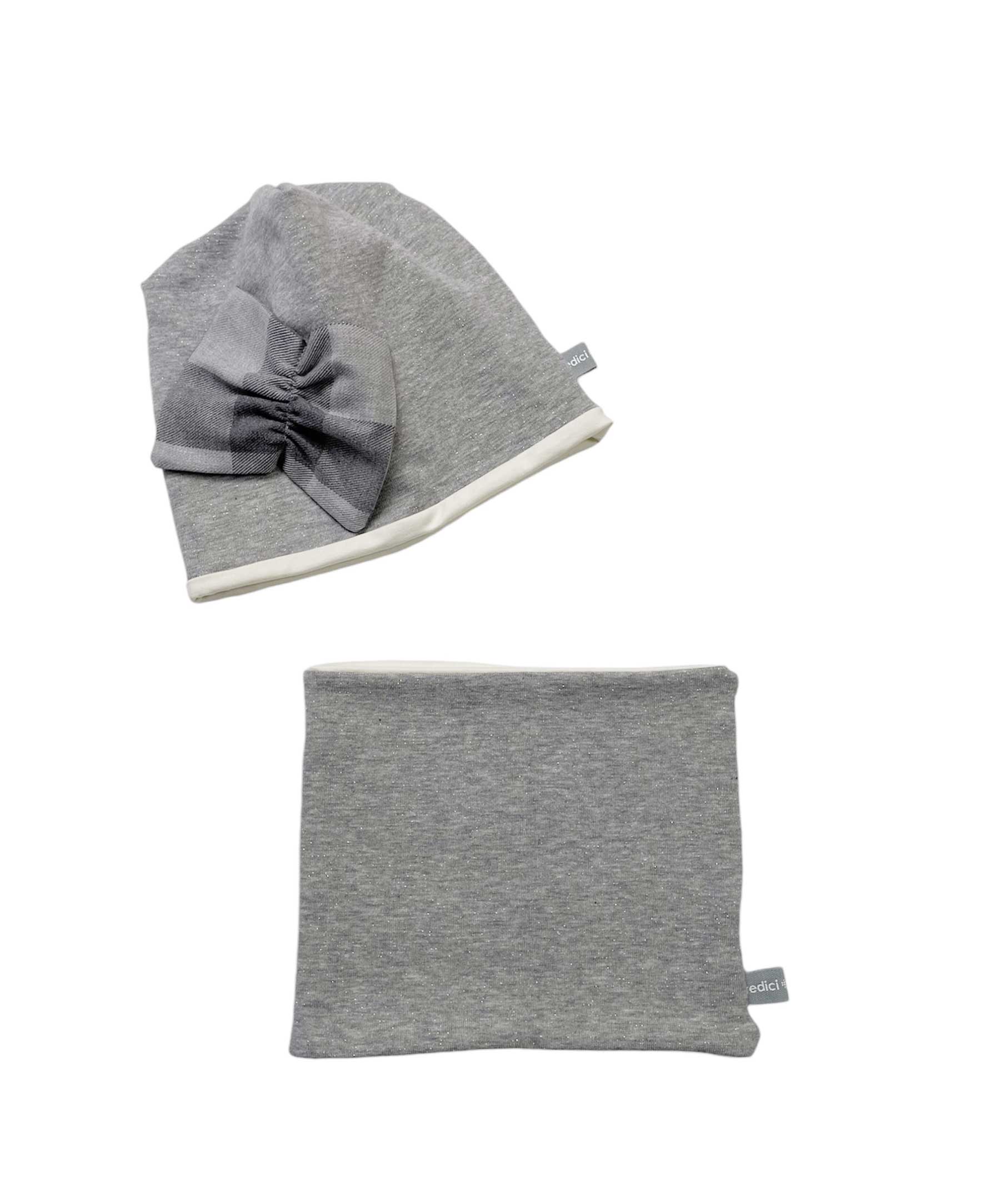 Scaldacollo in felpa invernale grigio lurex argento. Da abbinare alla berretta della stessa fantasia. Articoli venduti separatamente.