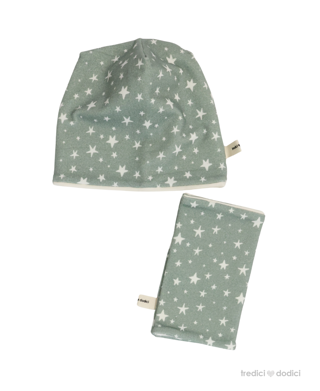 Scaldacollo in cotone doppio strato fantasia stelle. Da abbinare alla berretta della stessa fantasia. Articoli venduti separatamente.
