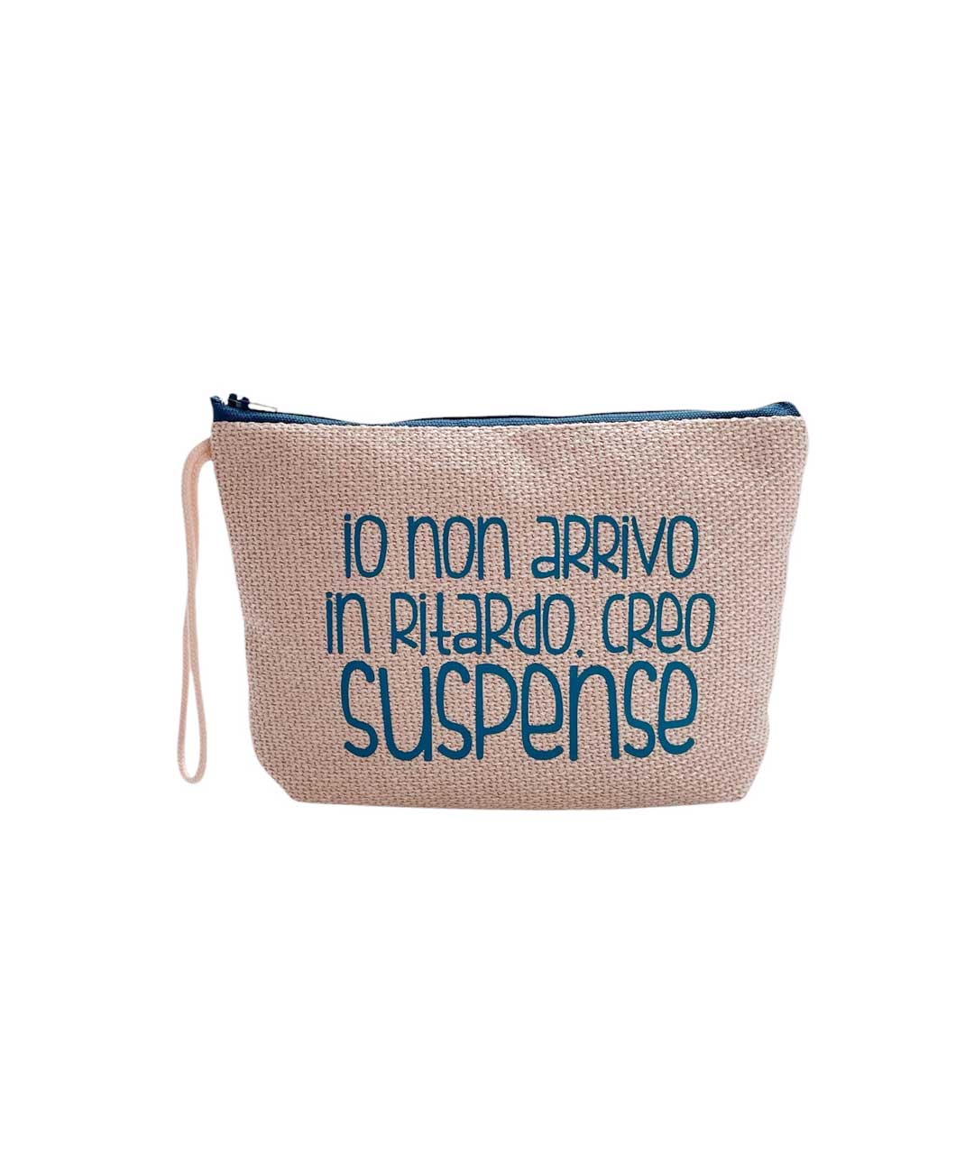 Pochette con cerniera e fodera interna, personalizzata con frase. Ideale da tenere in borsa o nello zaino o da usare per fare una passeggiata o la sera con il comodo laccetto.