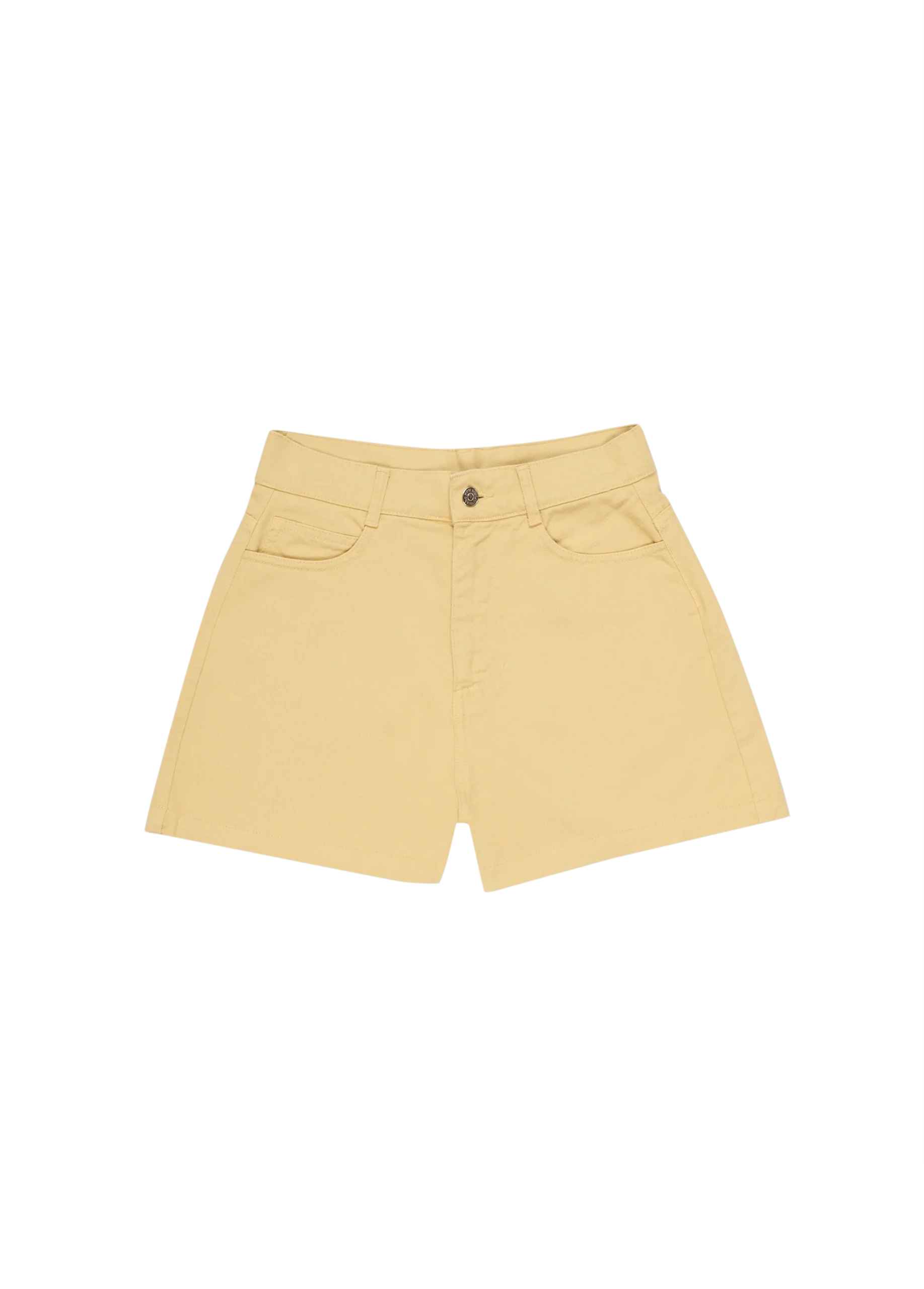 Pantaloncino in jeans a vita alta, con tasche laterali e nella parte posteriore. Vestibilità regolare ed elasticizzato in vita