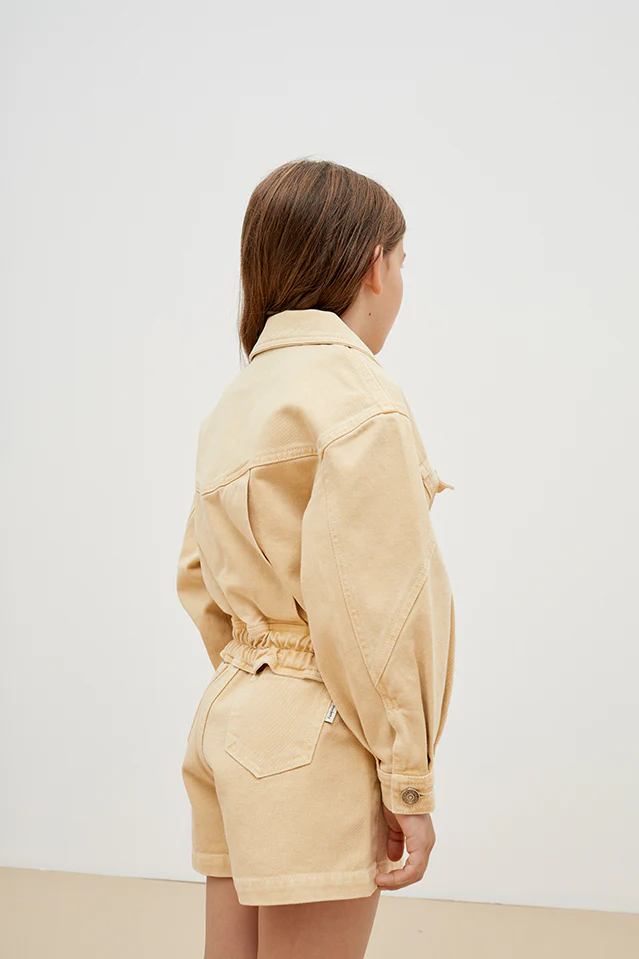 Pantaloncino in jeans a vita alta, con tasche laterali e nella parte posteriore. Vestibilità regolare ed elasticizzato in vita COMPOSIZIONE: 100% cotone BCI (Better Cotton Initiative, cotone sostenibile), certificazione GOTS e OEKO-TEX Realizzato in Portogallo