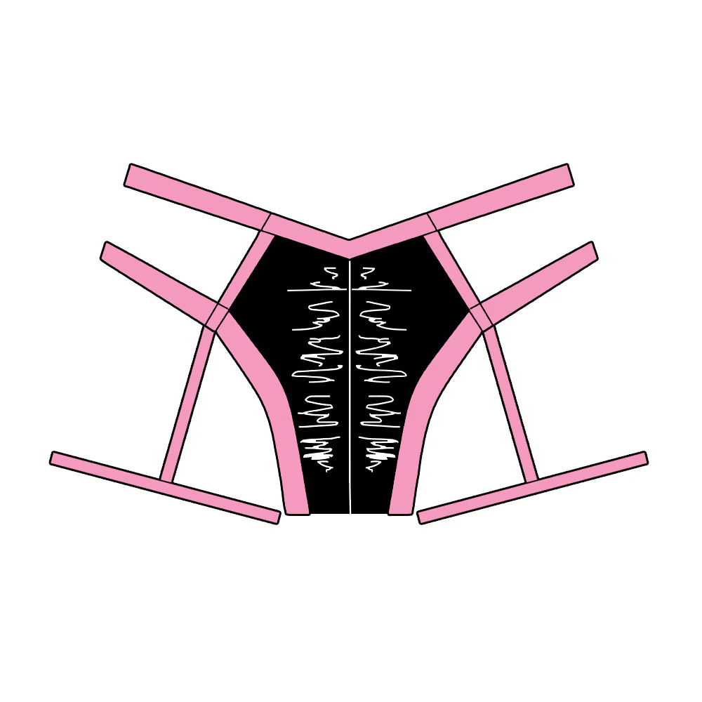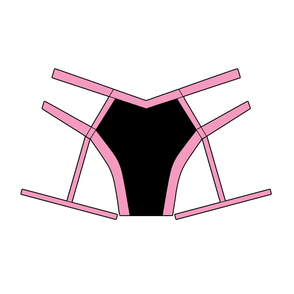 slip vita bassa2 striscie laterali ai fianchi sottilitaglio brasilianacon arricciatura posteriore harness alle coscie bordi girovita e gamba con bordo elasticotessuto a scelta tra le cartelle coloribordi elastici a scelta nella cartella colori