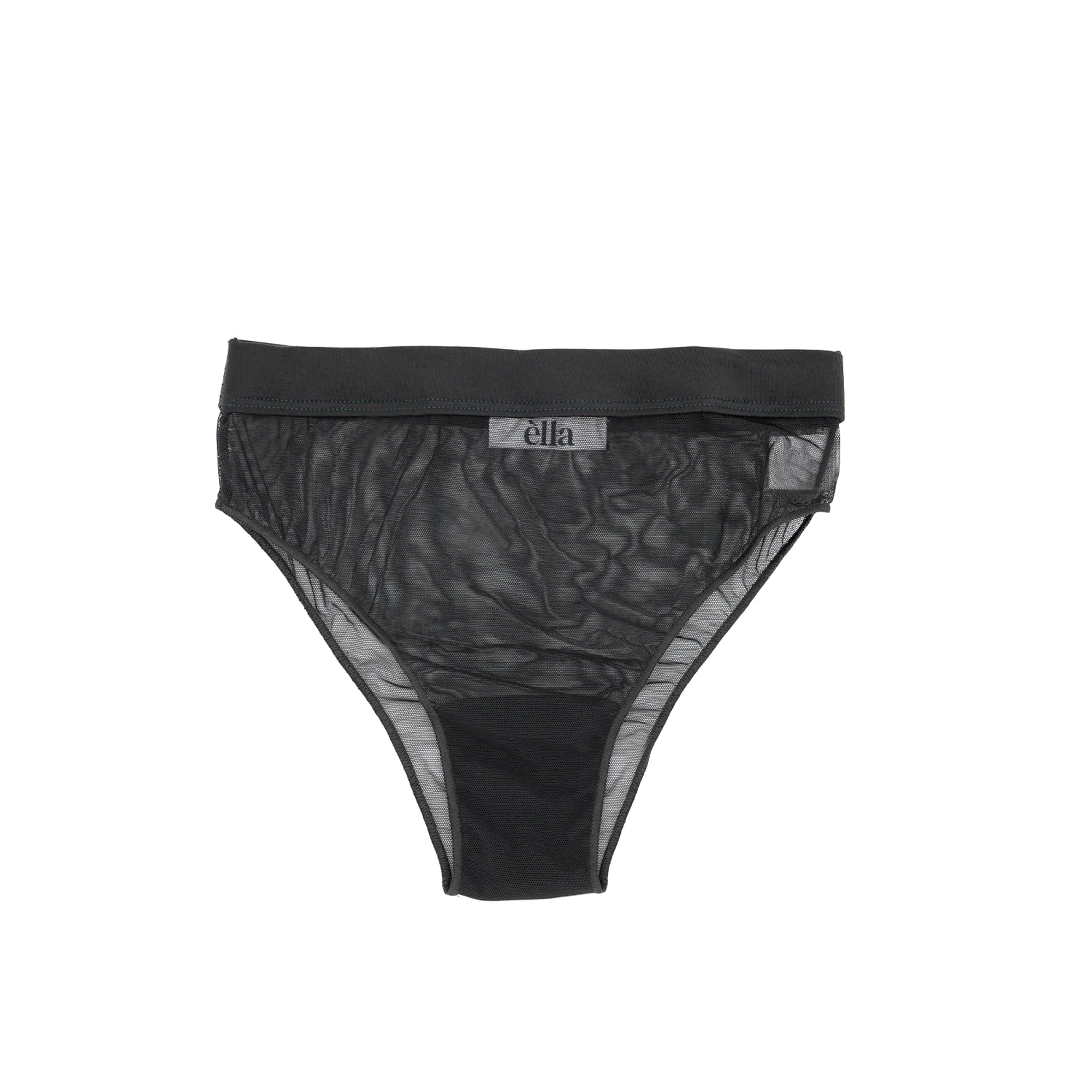 Slip in tulle a vita alta, rifinito con elastico e pattina interna in cotone.
