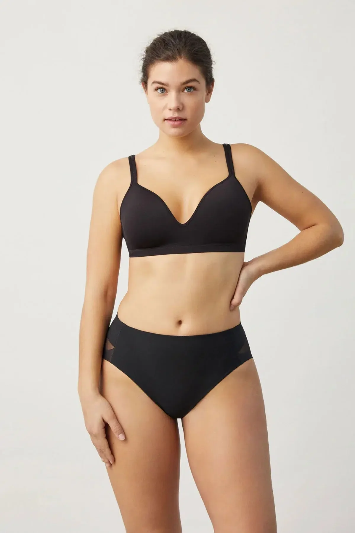Slip riduttore con effetto perizoma. Incorpora un pezzo centrale di rinforzo nell’addome inferiore per ottenere un effetto pancia piatta. Cuciture ultrapiatte che lo rendono impercettibile sotto i vestiti. Classico slip abbinato a tessuto invisibile tagliato a laser sui glutei con effetto perizoma. Il comfort e il sostegno di uno slip e la raffinatezza di un perizoma, tutto nello stesso capo.