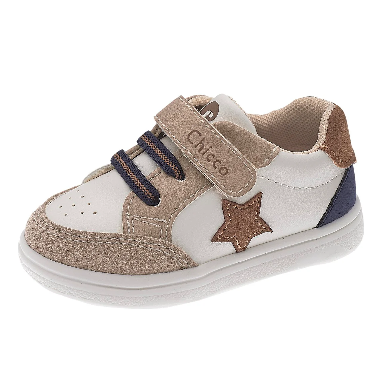 - Sneakers primi passi da bambino con dettagli di colore beige e blu con stella laterale