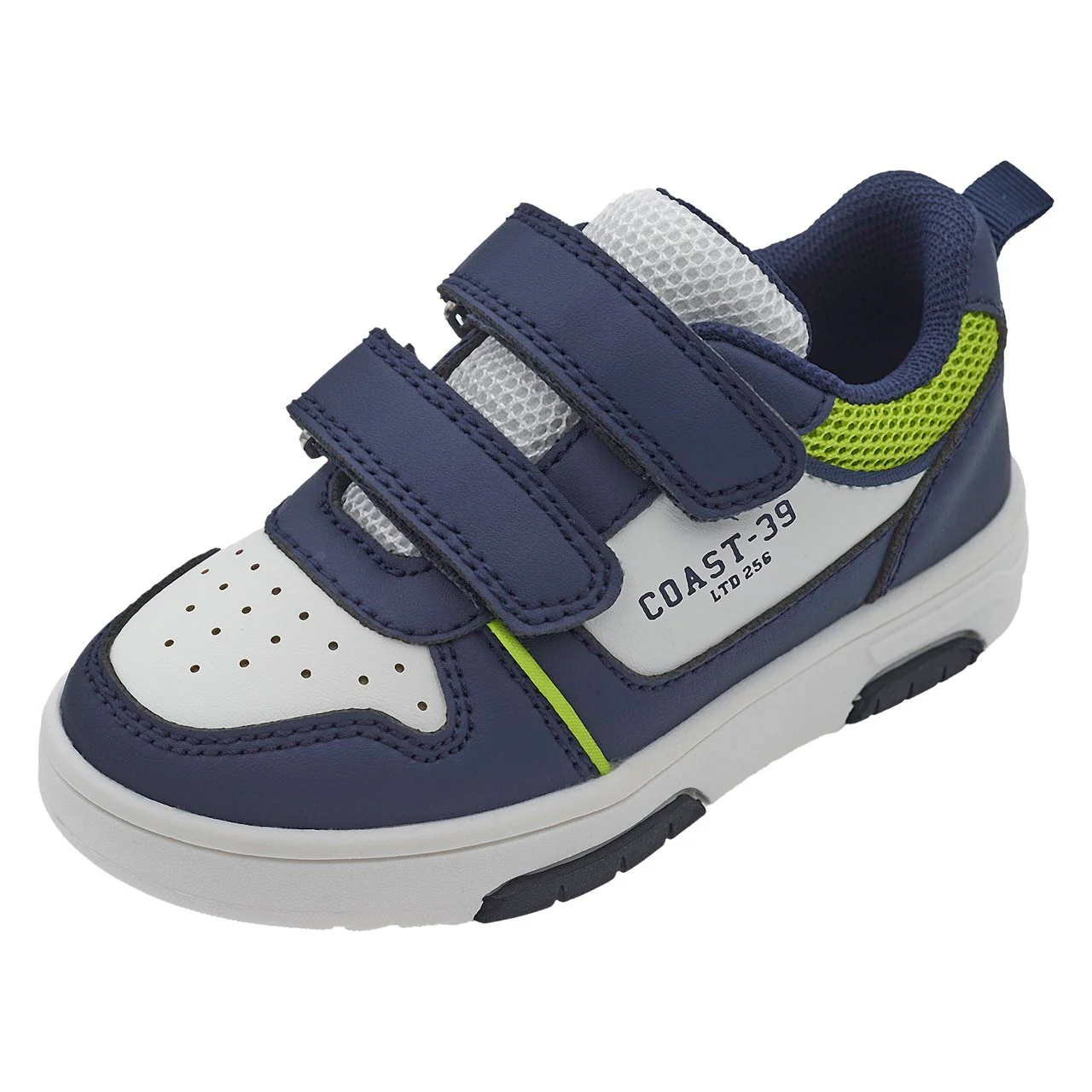 - Sneakers moda con dettagli bianchi/giallo fluo e stampa laterale. Suola bianca con inserti di colore blu