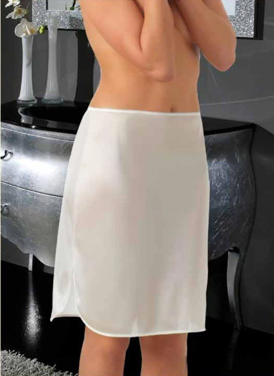 Il sottogonna Erredi รจ morbidissimo poliammide, elastico in vita merlettato, spacchetti laterali e finitura con bordo, ideale sotto ogni tipo d’abito, vestibilitร classica Composizione 100% poliammide art. 1018