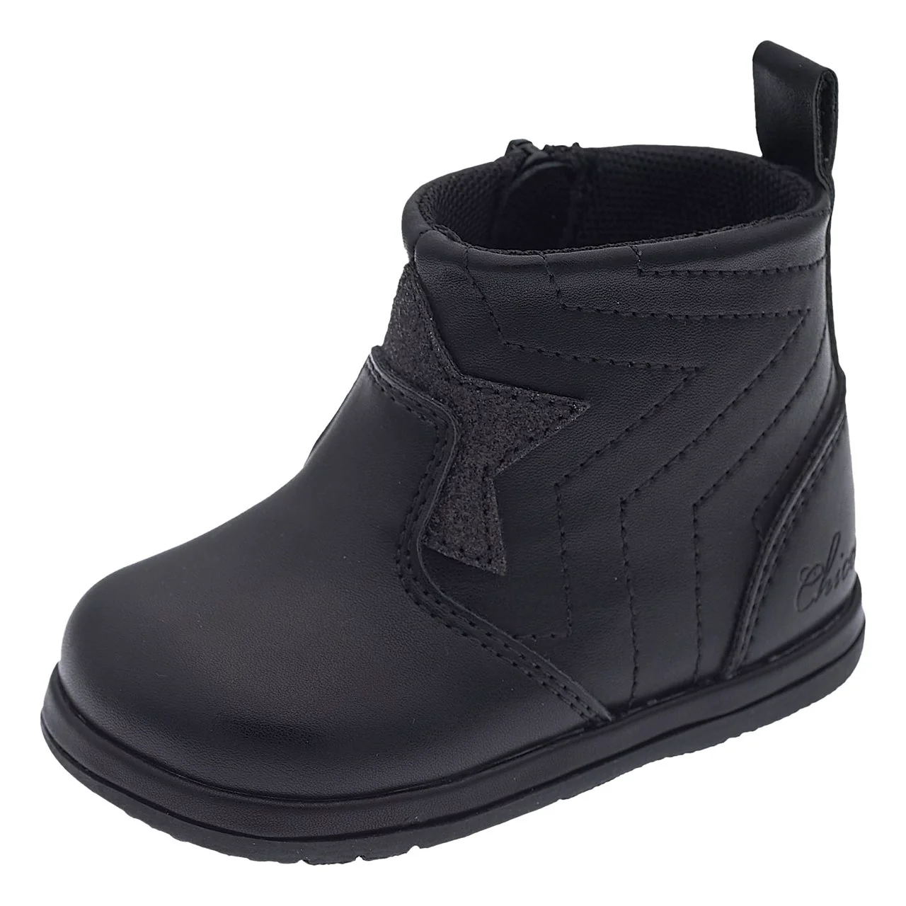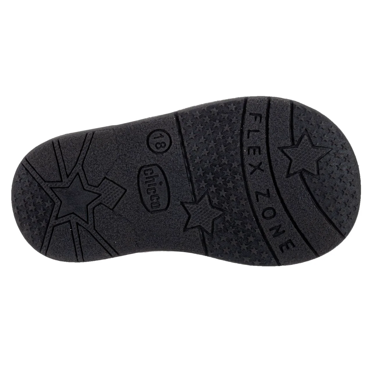 Stivaletto primi passi da bambina con stella glitter. Regolabile con zip laterale forma arrotondata regolabile con zip laterale “Flex-zone” suola con linee di flessione per garantire la naturale flessibilità del piede “Impronta Naturale Chicco” l’esclusivo sottopiede che asseconda il naturale sviluppo dell’arco plantare