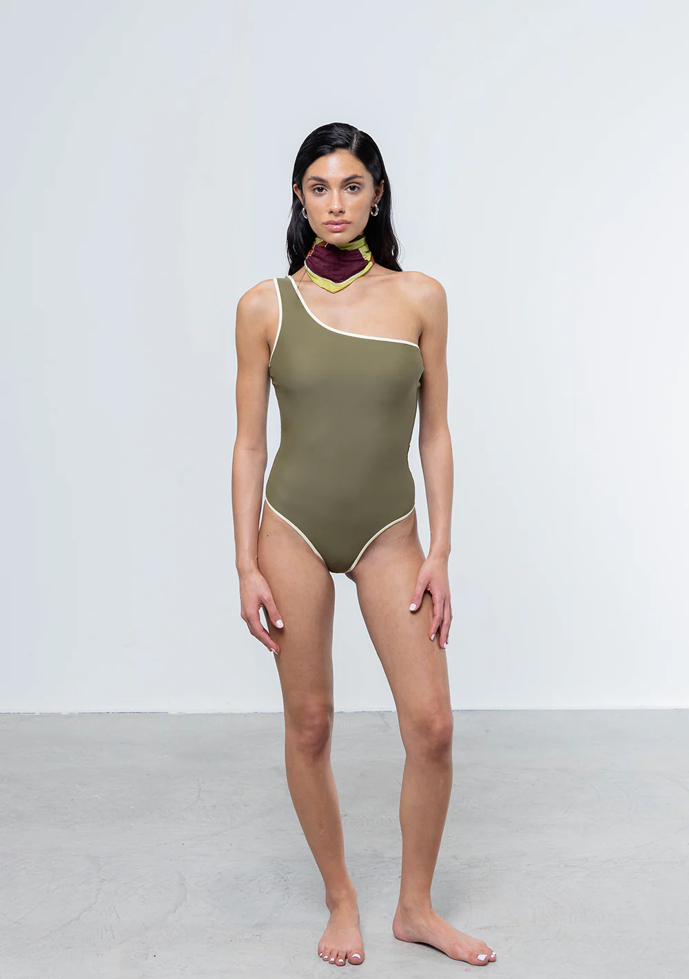 Un modello che coniuga sensualità e classe. Il profondo scollo a V è supportato da una struttura interna che valorizza il décolleté senza compromessi sul comfort. Il drappeggio sul punto vita armonizza le proporzioni, offrendo un effetto snellente naturale. Vestibilità perfetta per ogni silhouette.