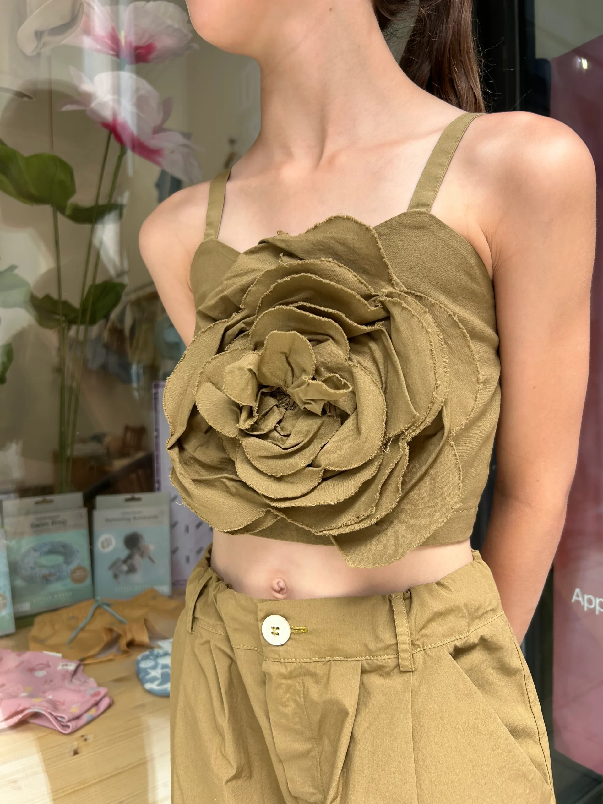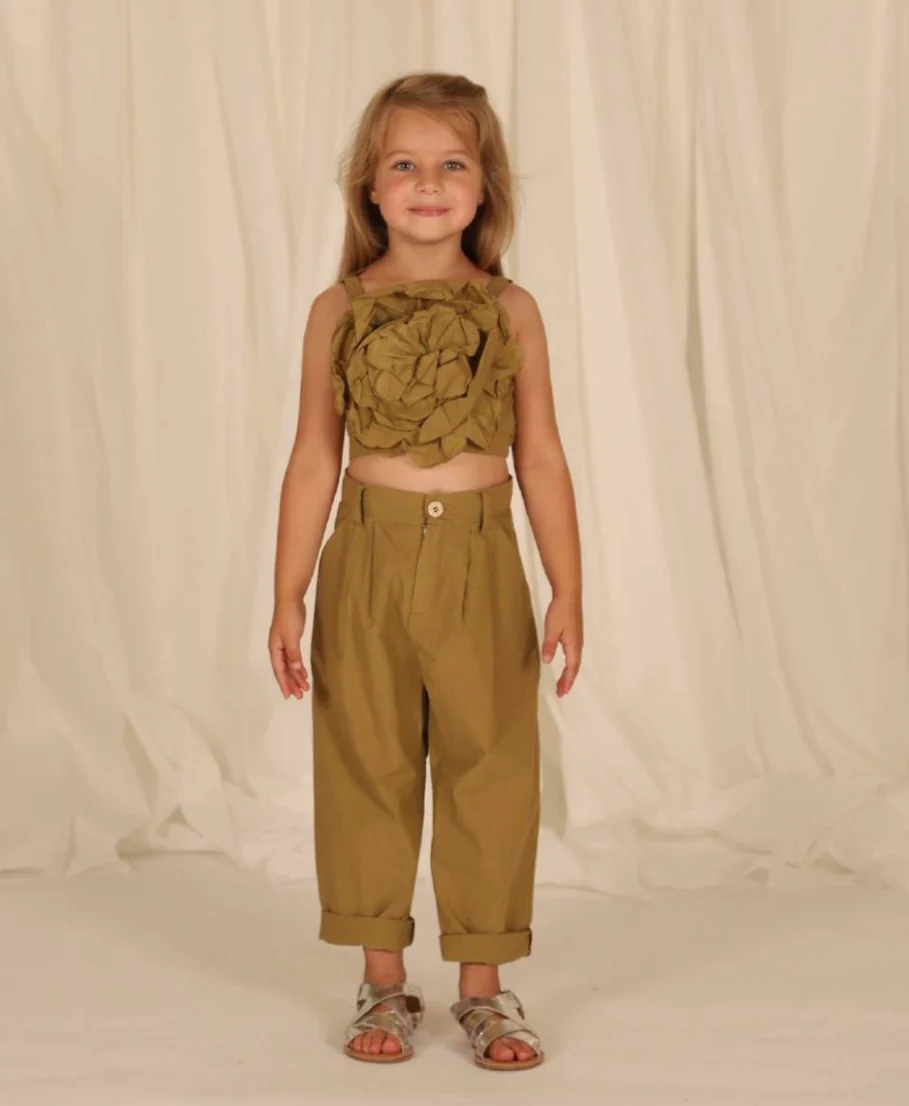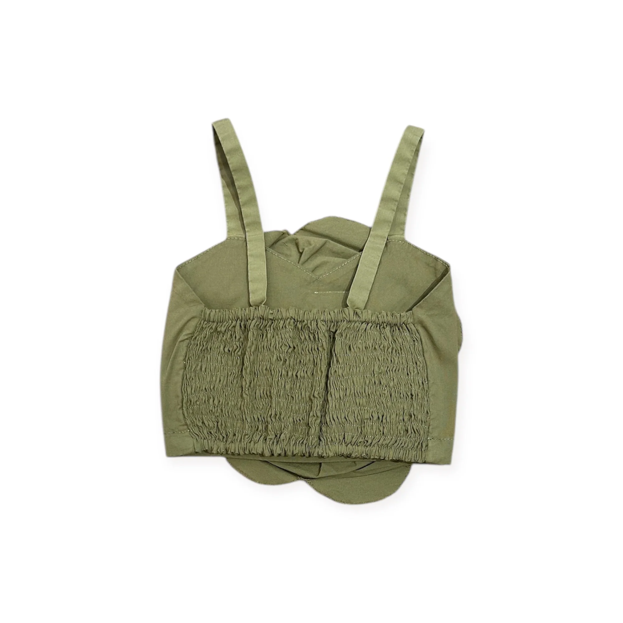 Questo top verde per bambina è perfetto per l’estate con il suo grazioso fiore sul davanti. Grazie al suo design elasticizzato sul retro, offre comfort e stile alla tua piccola. Aggiungi un tocco cool ed elegante al suo guardaroba con questo top estivo.