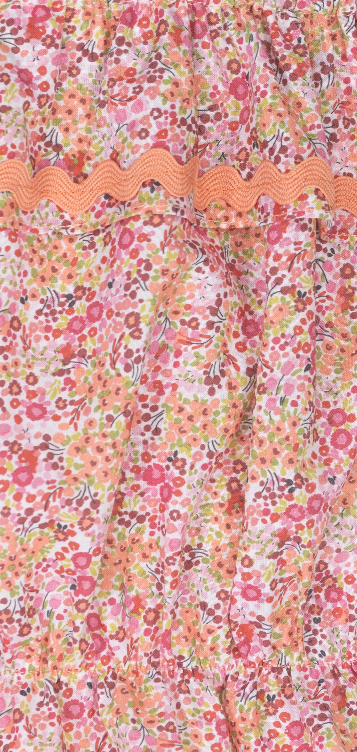 Il top da bambina Victoria in tessuto voile leggero, modello cropped con una simpatica stampa floreale Liberty, ulteriormente definito da un bordo a nastro ondulato e spalline sottili regolabili.