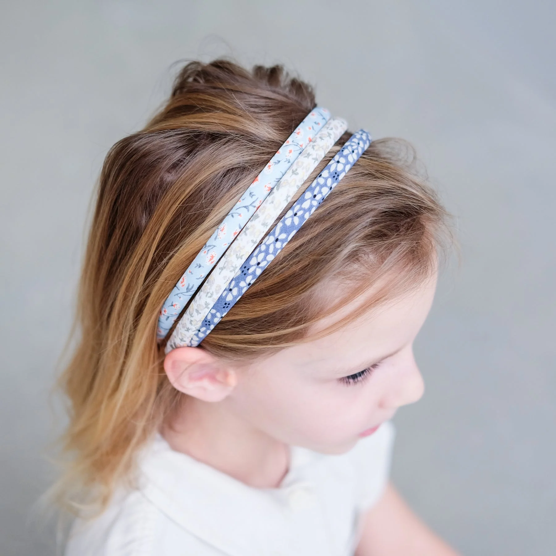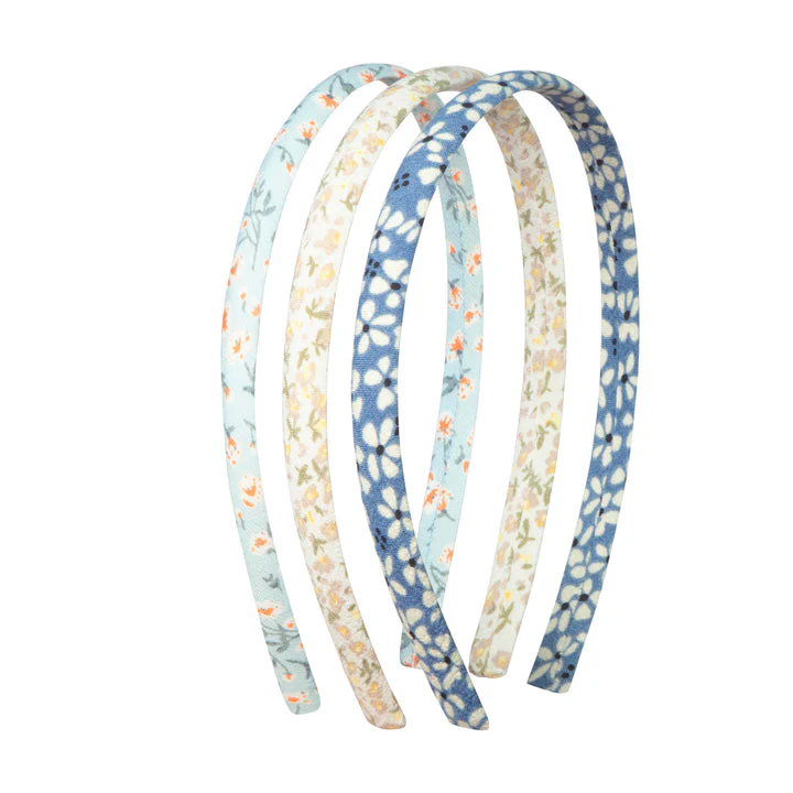 Un trio di cerchietti perfetti in un bellissimo mix di tessuti con stampe floreali. Funzionano meravigliosamente indossati uno alla volta ma sono ancora più belli abbinati insieme!