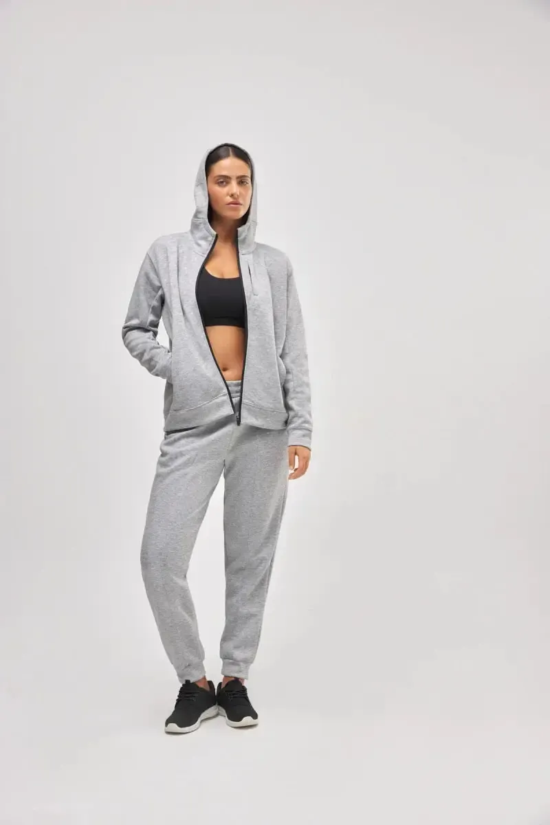 Completo sportivo donna realizzati in un tessuto morbido e confortevole, si adattano al tuo corpo, offrendoti completa libertà di movimento. Giacca con cappuccio aperta con cerniera nera che le conferisce un tocco moderno, tre tasche funzionali per riporre piccoli oggetti. Pantalone con coulisse elastica in vita, tasche laterali e polsini alle caviglie.