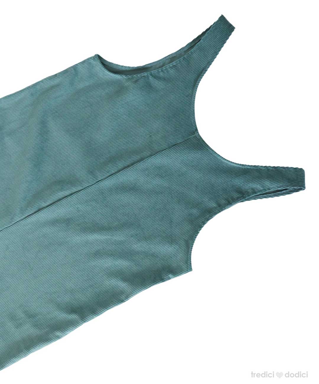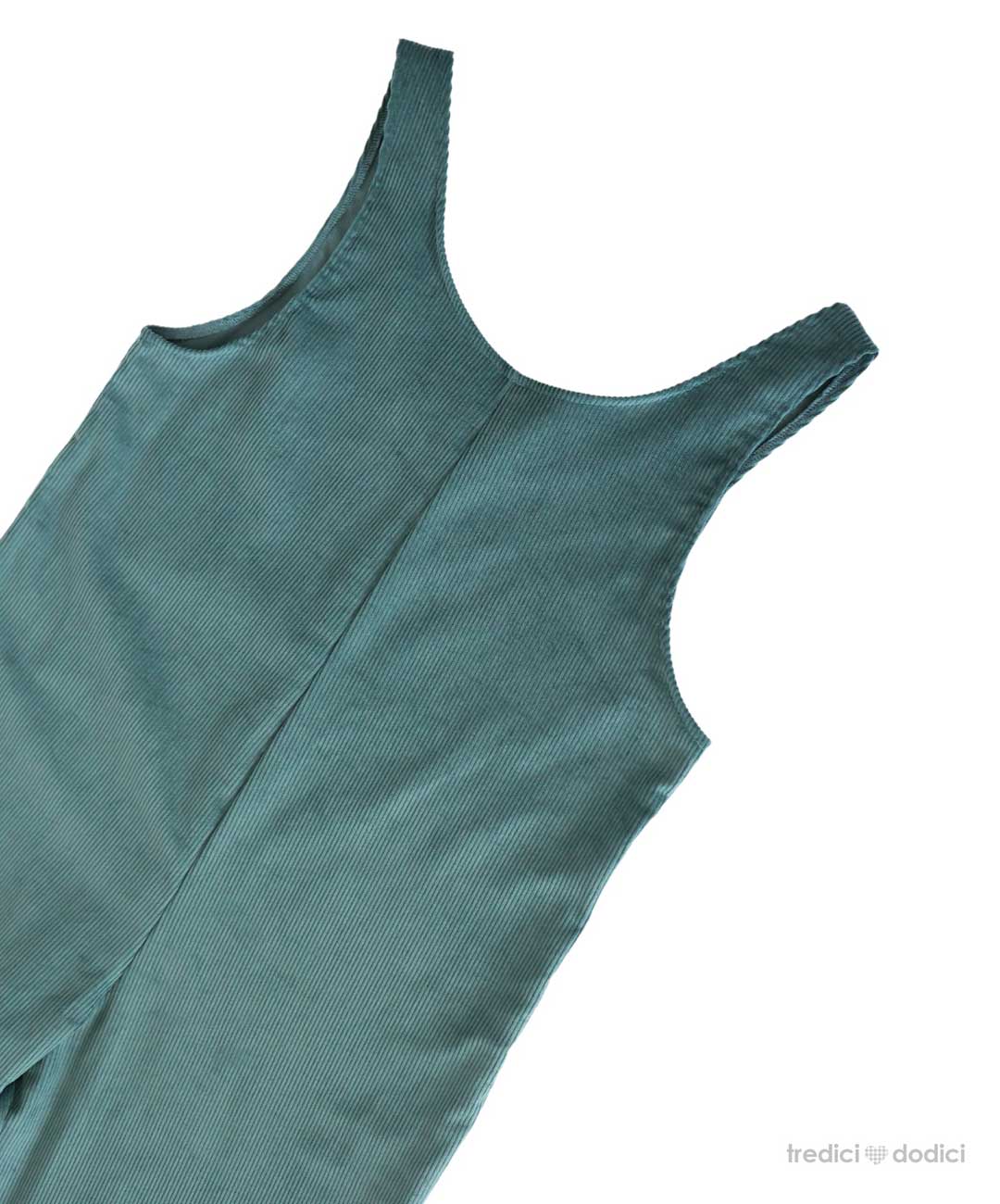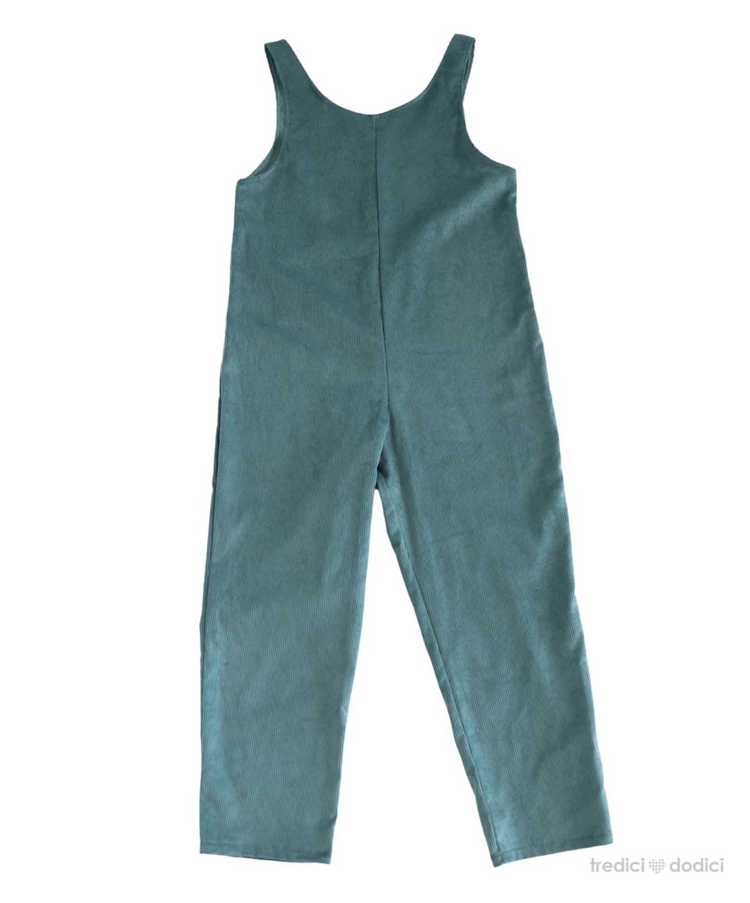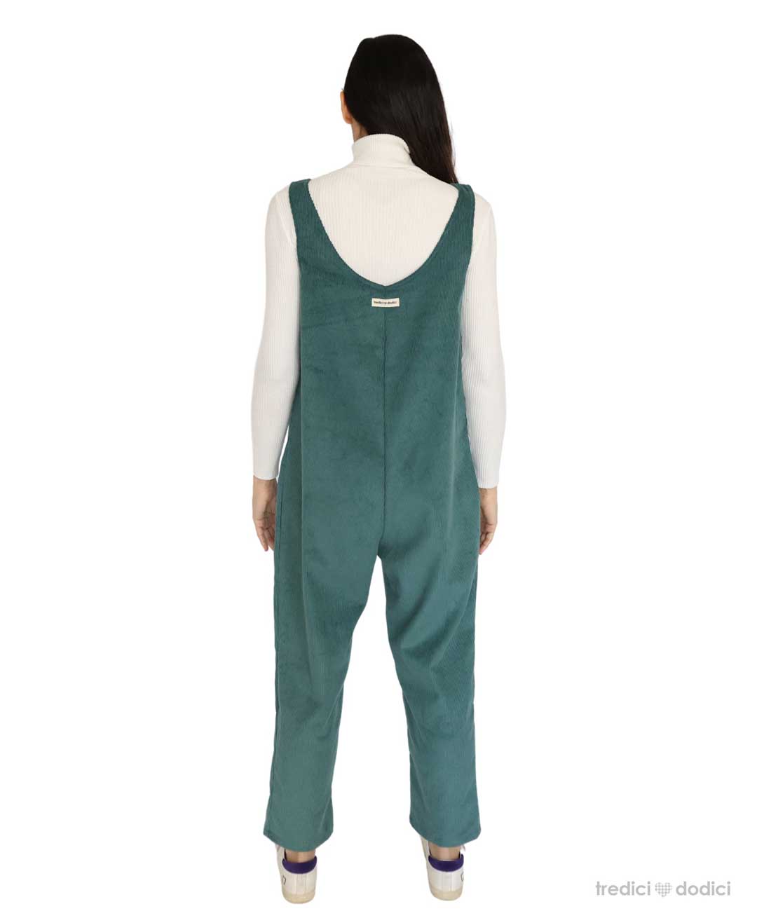Tuta donna intera in velluto a costine con cavallo sceso, più scavata dietro, vestibilità morbida. Si può portare con o senza cintura in vita.