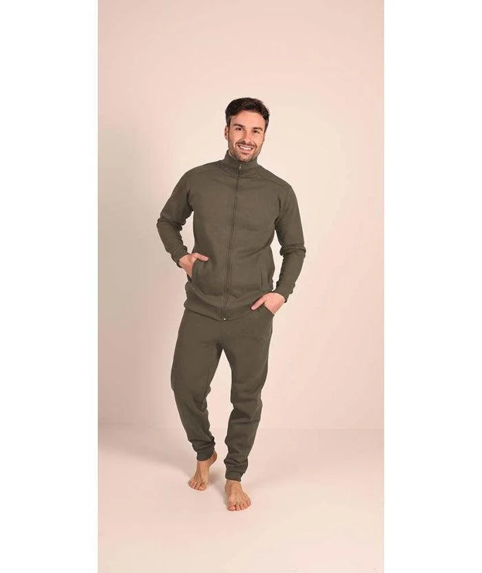 Pigiama/Tuta uomo in felpa della Gary, maglia con collo alto, zip centrale e tasche, pantalone con tasche e con polsini, il tutto completamente in tinta unita. Composizione: 100% cotone art. 8002