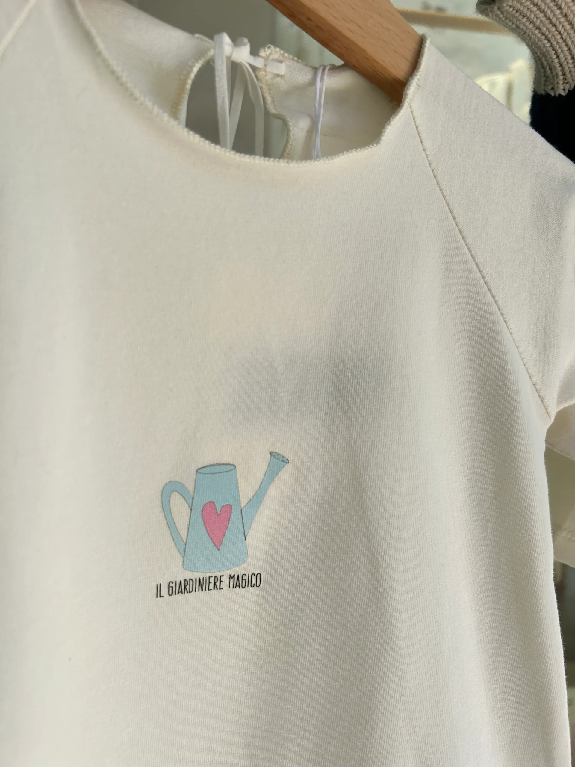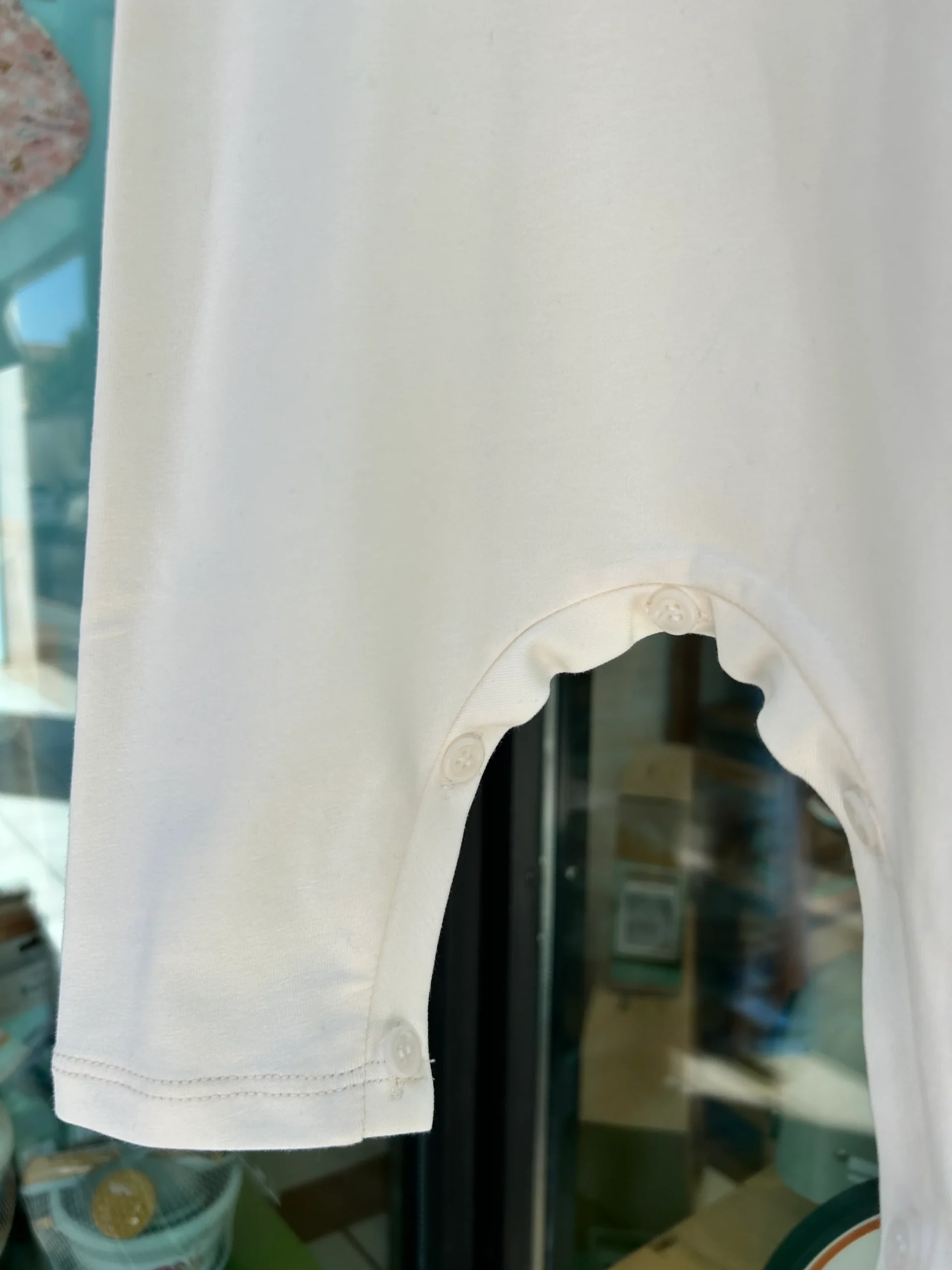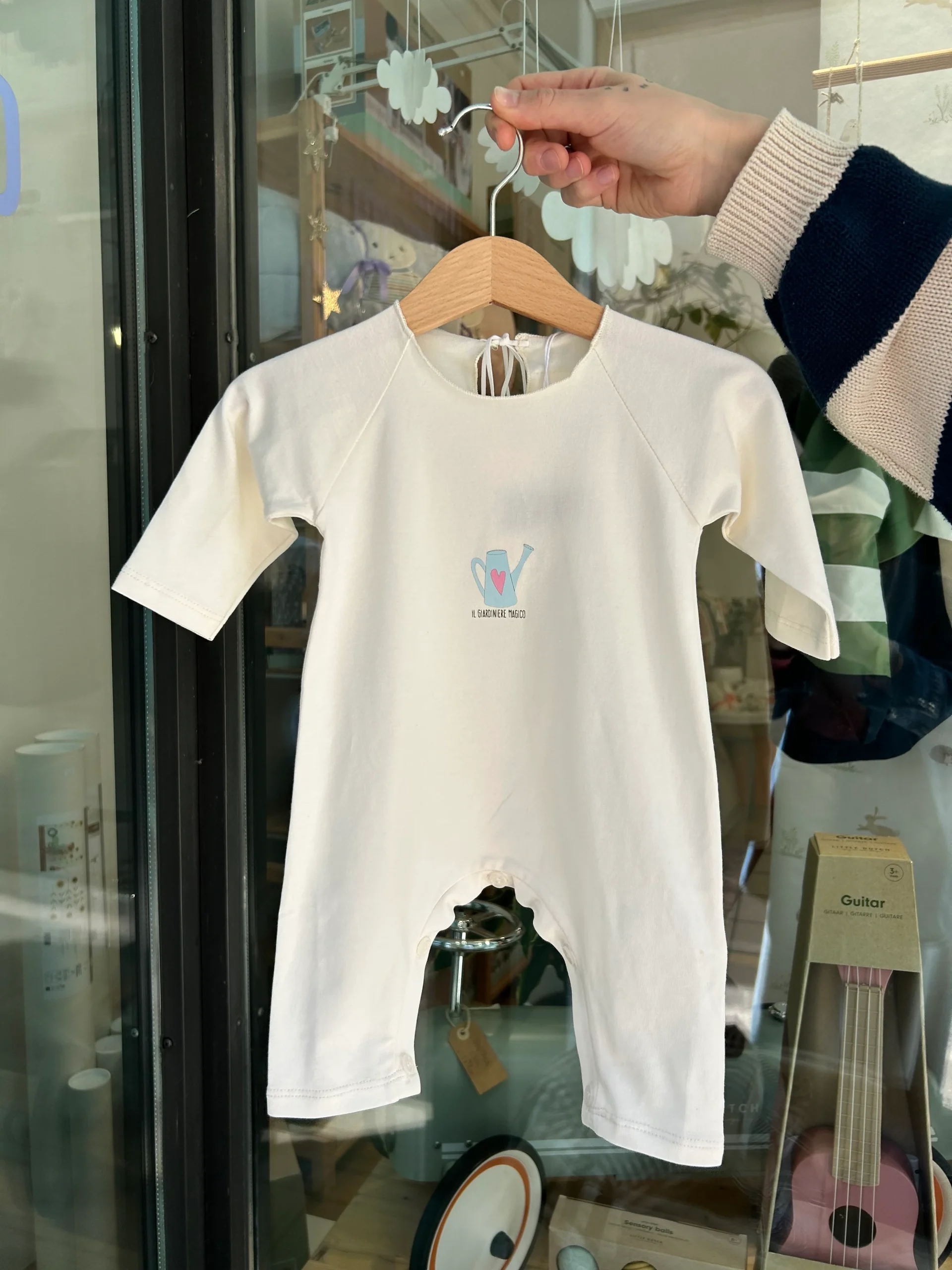 Tutina ideale per i neonati grazie al morbido cotone e ai bottoni sul fondo che ne permettono un cambio comodo. Perfetta come regalo di nascita, presenta una simpatica stampa sul davanti.