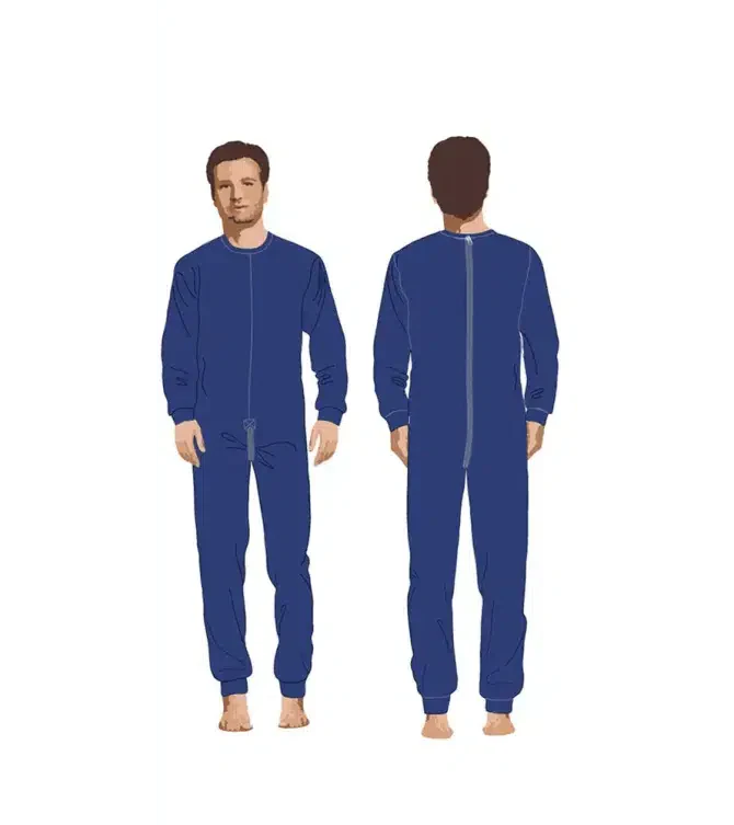 Tuta clinica uomo in caldo cotone, totalmente in tinta unita con cerniera sul retro della Gary.