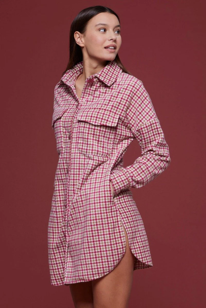 Vestaglia/Giacca aperta da donna in micropile Noidinotte, modello camicia con tasche frontali e quadrettino piccolo, abbottonatura centrale e tasche laterali.