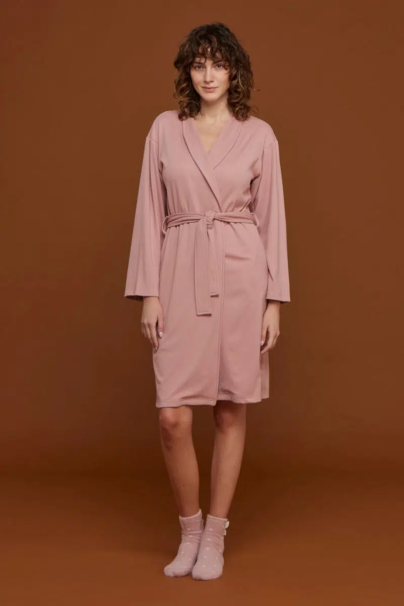Vestaglia da donna in micropile rasato Noidinotte tinta unita, collo rever con cintura da annodare in vita.