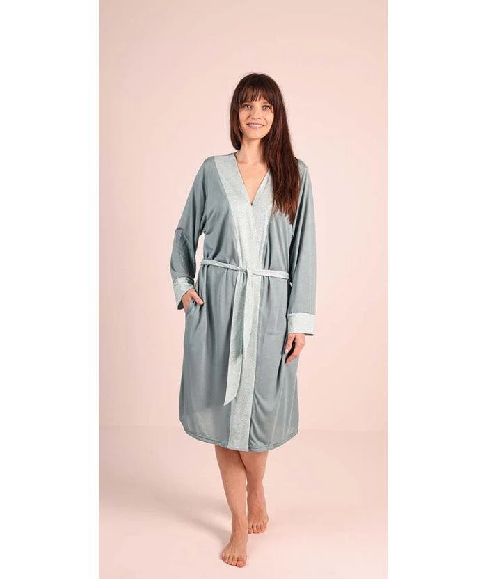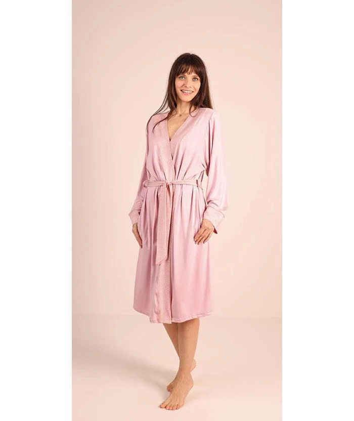 Vestaglia donna della Gary in morbidissima viscosa, in delicata tinta unita con bordo collo, polsini e cintura in micorfantasia.
