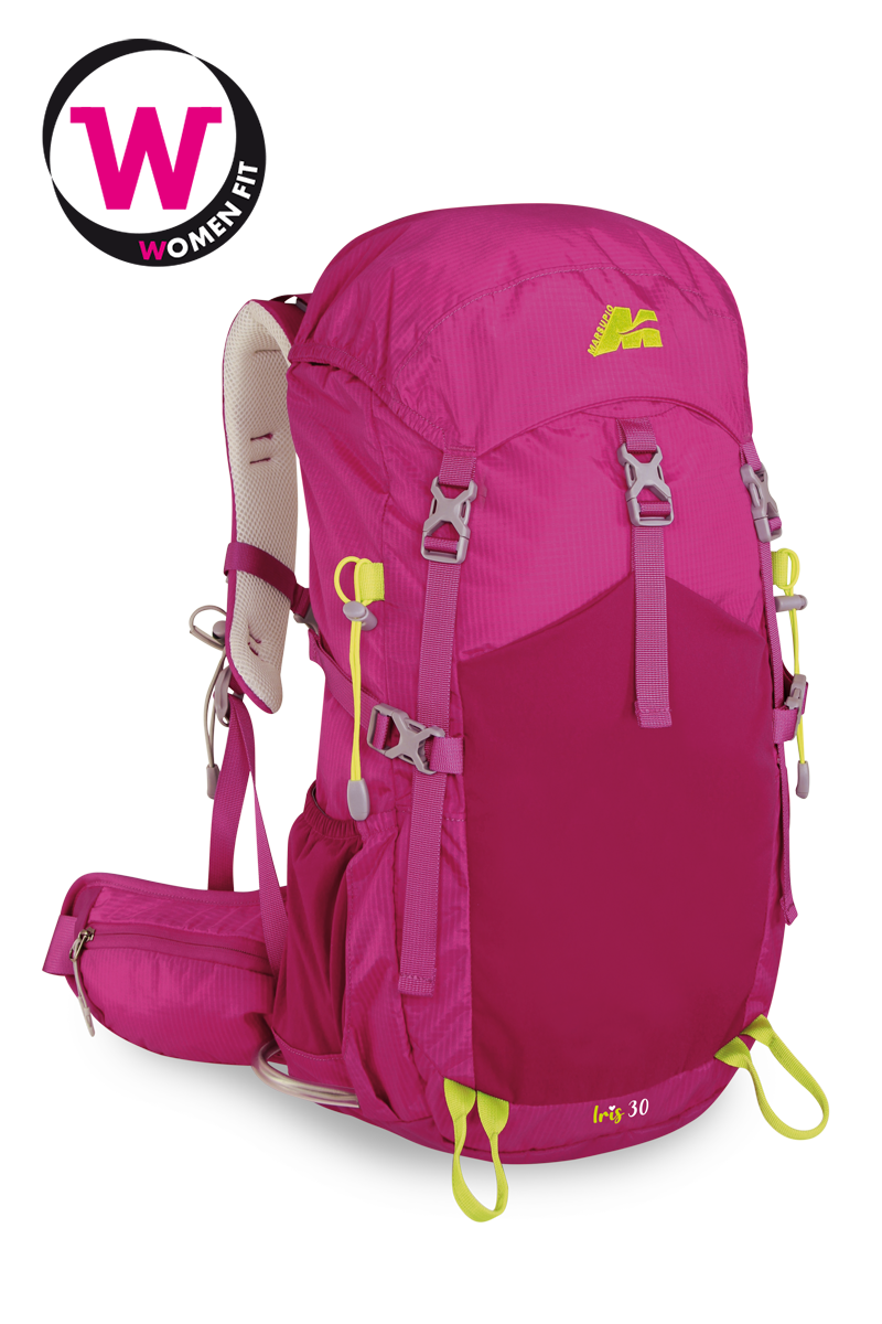 Iris 30 è il nuovo zaino con un concept tutto al femminile. Questo zaino da trekking leggero ed ergonomico è WOMEN FIT e si adatta comodamente al corpo delle donne. Il bastino è ComfortZone MESH SYSTEM ma con l’aggiunta di due comodi cuscinetti verticali per sorreggere meglio la schiena, anche gli spallacci sono leggeri ed ergonomici per dare maggiore confort durante l’escursione, sono inoltre dotati di cinturino pettorale regolabile con fischietto d’emergenza. È dotato di elastico porta bastoni sullo spallaccio e di due porta bastoni nella parte frontale, dove si può collocare comodamente anche la piccozza. La comoda tasca frontale in materiale elasticizzato ha una chiusura veloce con fibbia, utile per riporre giacche o indumenti da tenere a portata di mano. Lateralmente ha due ampie tasche sui cuscinetti lombari (nelle quali può comodamente trovare posto il cellulare), due tasche porta borracce , cinghie di compressione ambo i lati e porta attrezzi. È dotato di una tasca sul cappuccio ed è compatibile con i sistemi d’idratazione. Copri zaino inserito sul fondo.