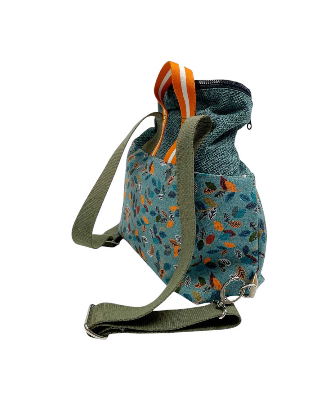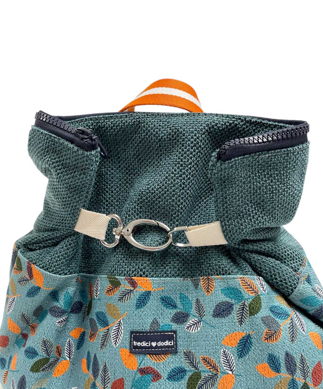 Si può portare aperto quando pieno oppure chiuso con il moschettone per una maggiore sicurezza.