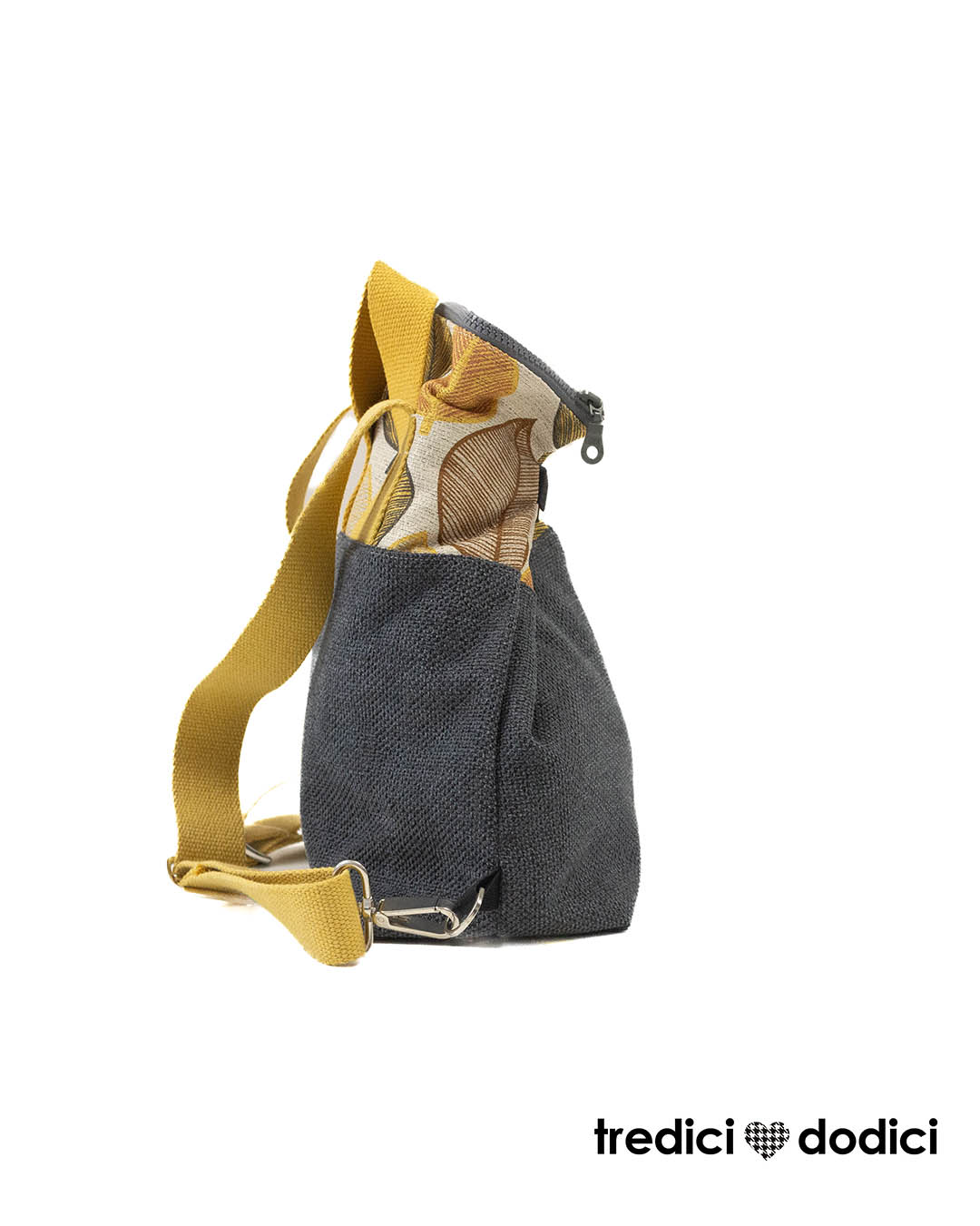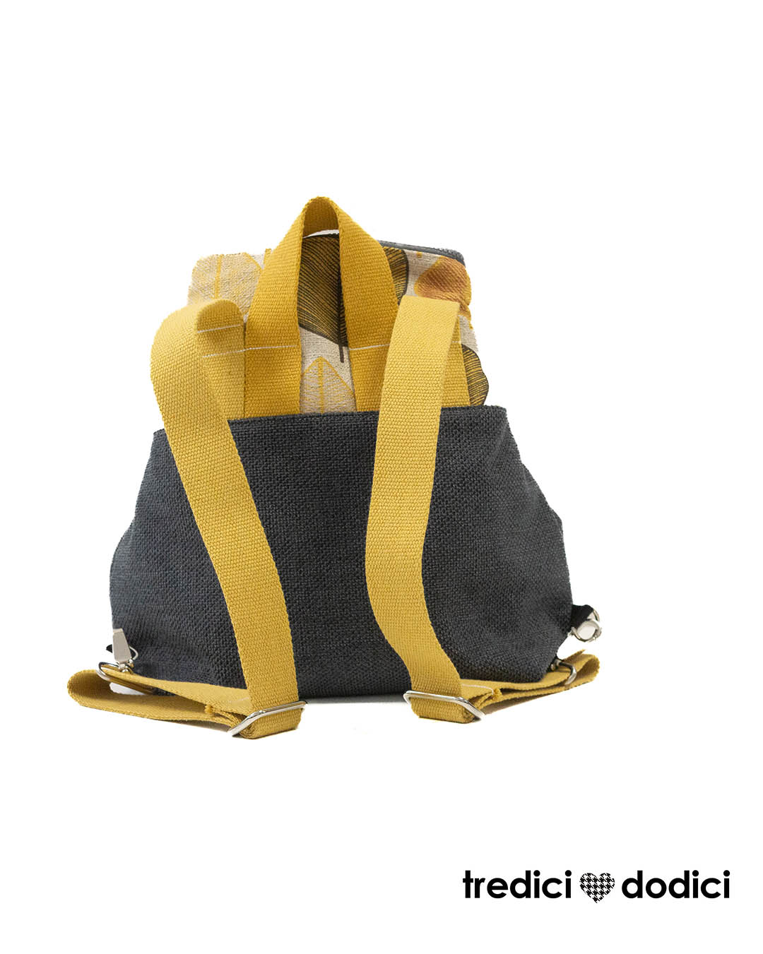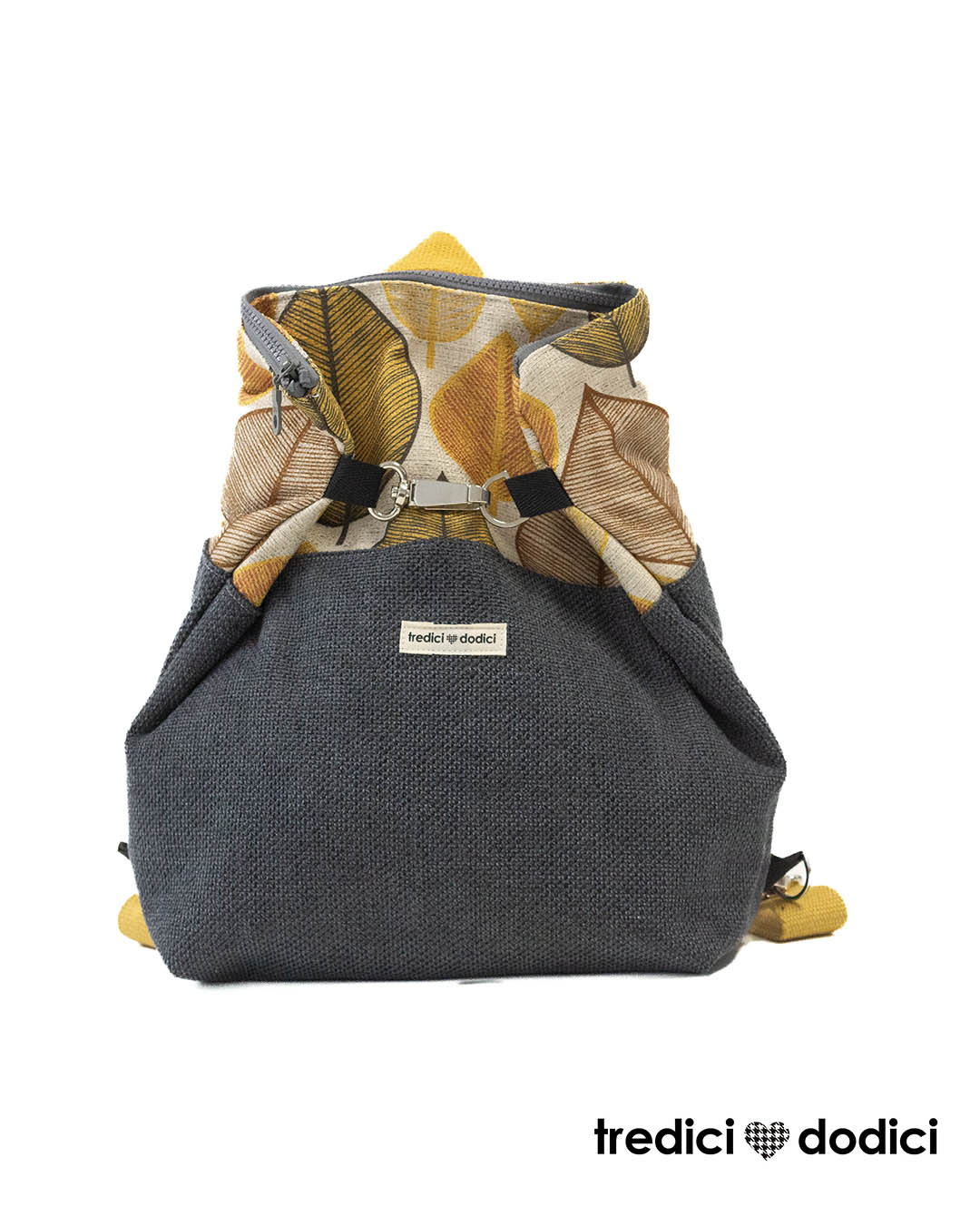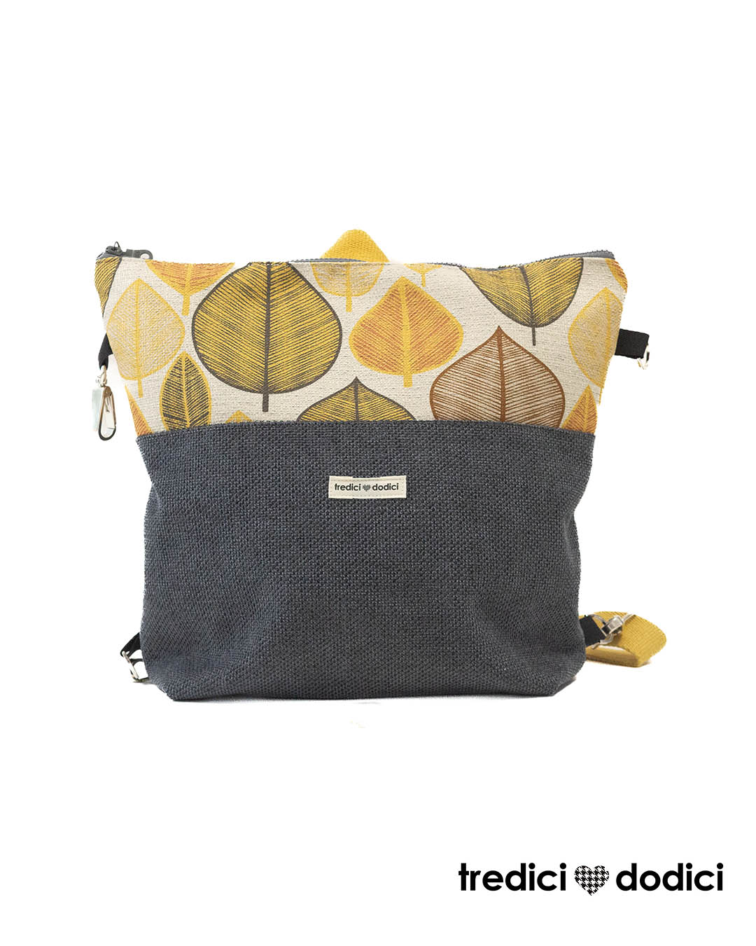 Zaino grigio scuro e foglie ocra