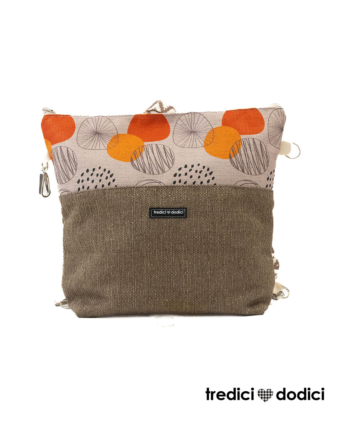 Zaino marrone con tondi arancioni