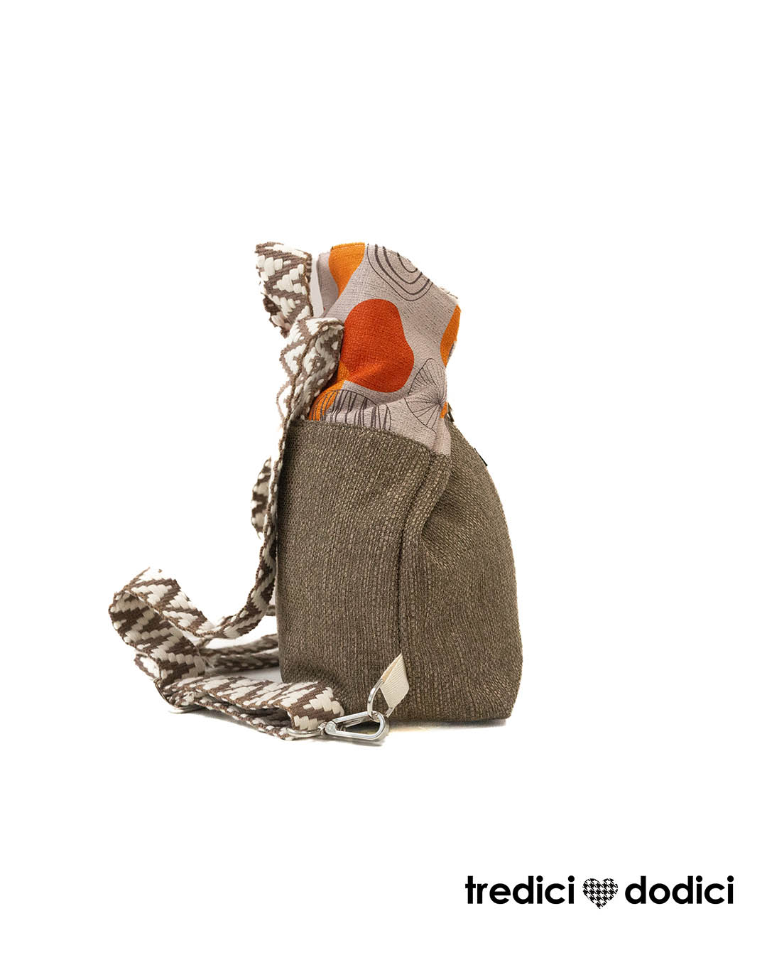 Si può portare aperto quando pieno oppure chiuso con il moschettone per una maggiore sicurezza.